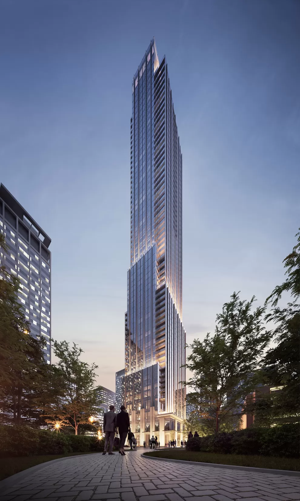 BY THE TOWERS OF MANHATTAN, 11YV RISES 62 STOREYS ABOVE YORKVILLE, WITH METICULOUSLY SCULPTED, ELEGANTLY- PROPORTIONED ARCHITECTURE AND STRONG VERTICAL L INES. THE BUILDING IS A SHIMMERING ADDITION TO THE TORONTO SKYLINE, A BOLD NEW ICON FOR THE CITY, WHOSE MINIMALIST FORM WILL NEVER AGE, REGARDLESS OF THE PASSING OF TIME.