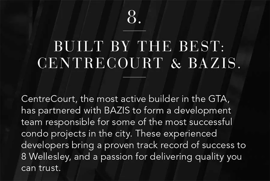 Welcome to 8 Wellesley Residences At Yonge, which is being developed by CentreCourt and BAZIS, and it’s set to stand 55 storeys-tall. The new building slated for the intersection of Yonge and Wellesley will be in a prime location right in the heart of the city,