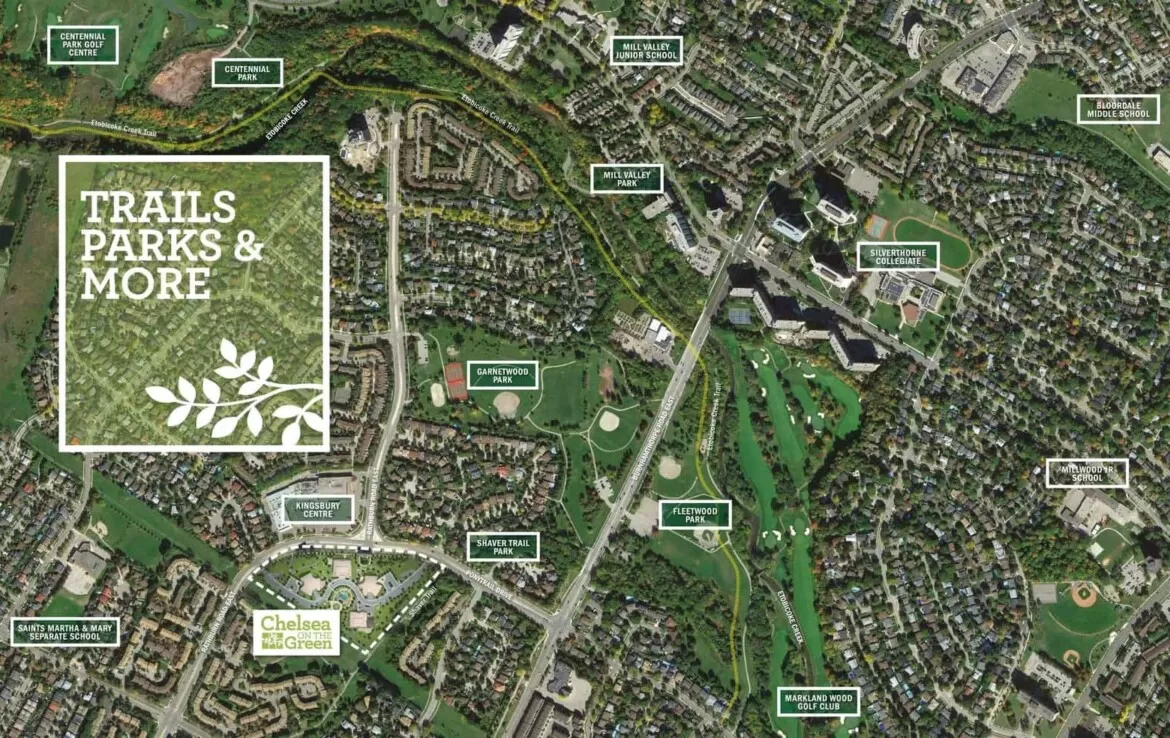 Other nearby green spaces include Garnetwood Park, Fleetwood Park, Etobicoke Creek Trail and Markland Wood Golf Course. So grab your bike, running shoes or golf clubs and starting enjoying the great outdoors at Chelsea on the Green!