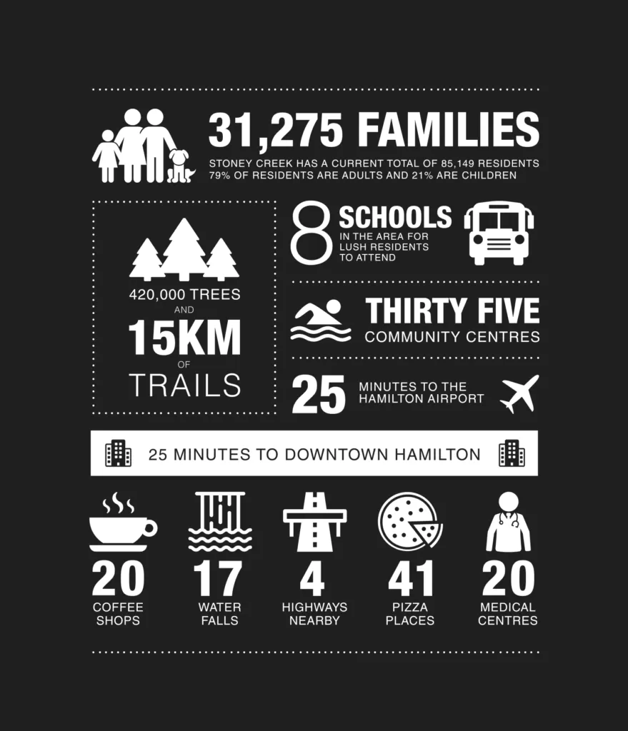 Stoney Creek. It’s a neighbourhood that has embraced the vibrancy that comes with growth and change, and gives residents the opportunity to design the life they want. Explore life in Stoney Creek by the numbers in our Infographic below.