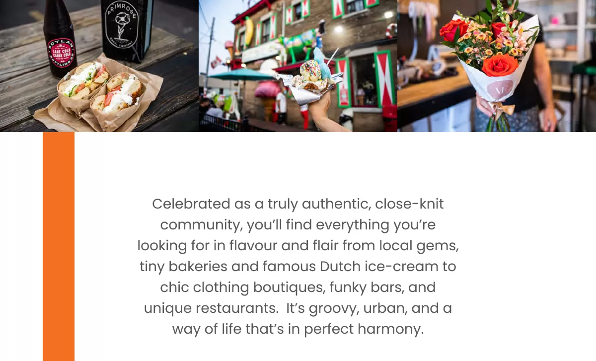 Celebrated as a truly authentic, close-knit community, you’ll find everything you’re looking for in flavour and flair from local gems, tiny bakeries and famous Dutch ice-cream to chic clothing boutiques, funky bars, and unique restaurants. It’s groovy, urban, and a way of life that’s in perfect harmony