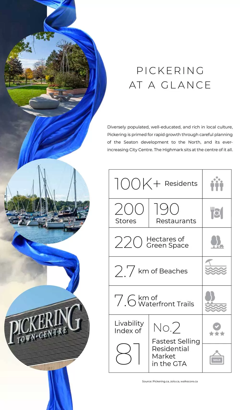 Achieve your own personal high mark. Step up to an elevated level of life just a stroll from Pickering Town Centre and a hop to Pickering GO, with Rapid Transit coming soon. Where wellness is at the heart of the design, with indoor and outdoor health and fitness spaces to recharge you. Places to play. Places to chill with Nature. Places to connect with friends. And technology that simplifies life every day.