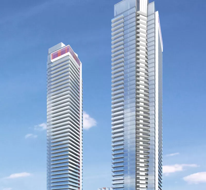 In Vaughan, one of the fastest growing cities in York Region, this is ICONA Condos, the redevelopment of 3201 Highway 7, at Edgeley Blvd and Highway 7. Located in the new Vaughan Metropolitan Centre, steps to the new subway terminus, the project will comprise of two towers, 44 and 48 storeys high, as well as the 9-storey redevelopment of the current Hilton Garden Inn on the site. With over 900 parking spots and ultra-modern amenities, the project is poised to become a landmark in the area.