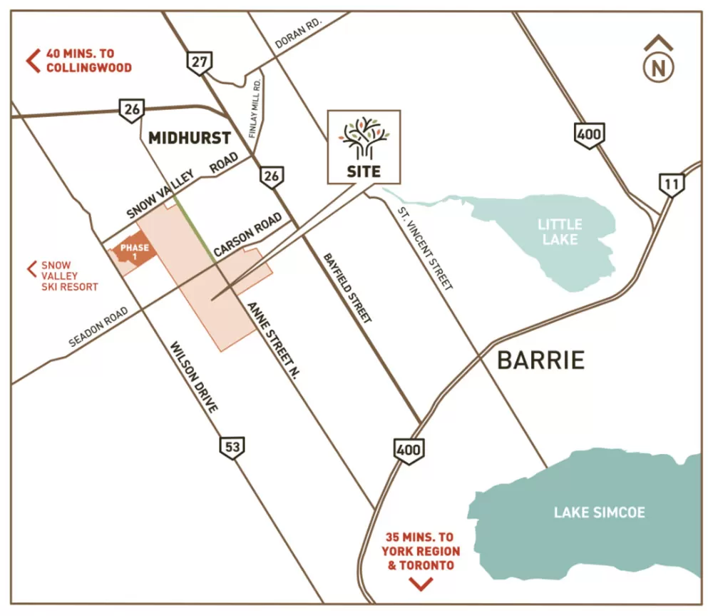 A master-planned community in Midhurst neighboring Barrie centered at the intersection of Ann Street and Carson Road. Nestled within an expansive landscape this premium collection of singles and semis lets you experience a lifestyle enriched by all four seasons. Witness the vibrant autumn colors, blossoming of spring, majestic beauty of winter and feel the warmth of summer like never before. At Ann Street enjoy the easy access to Hickling Trail. Each home will be close to proposed parks, schools, recreational facilities and green spaces. Come live where an active lifestyle full of exploration meets the balance of a calm retreat.