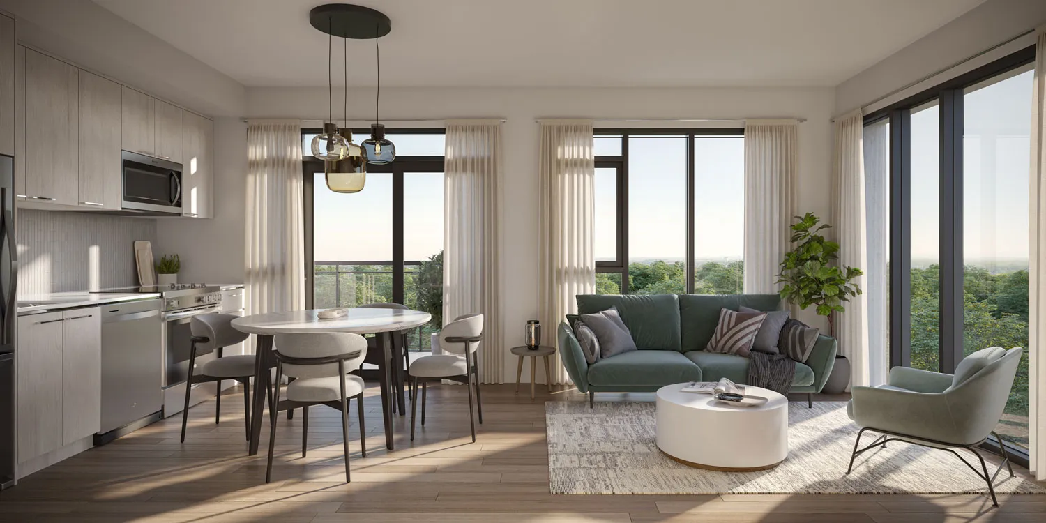 Discover interiors designed for better living, with floor to ceiling windows, sleek appliances, and contemporary finishes that welcome you in & embrace modernity.