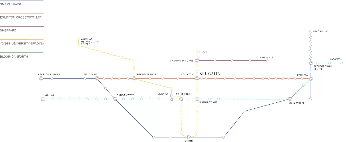 The Yonge & Eglinton area is a world unto itself, providing everything local residents could ever want or need. But when work or play calls you to head to other parts of the city, it’s good to know you’re well connected to the outside world, as well. In fact, the city’s most anticipated new transit link—the Eglinton Crosstown Line—will be in operation here soon, providing you with easy access to countless shopping and dining choices both east and west of Yonge & Eg. It’s just one more transportation option for locals, who are already well served by the TTC’s Line 1 subway, accessible at Eglinton Station—located less than a 15-minute walk from Keewatin.