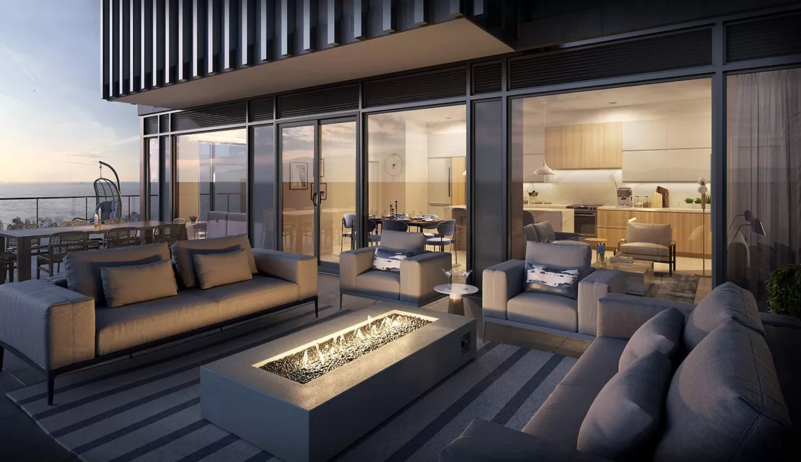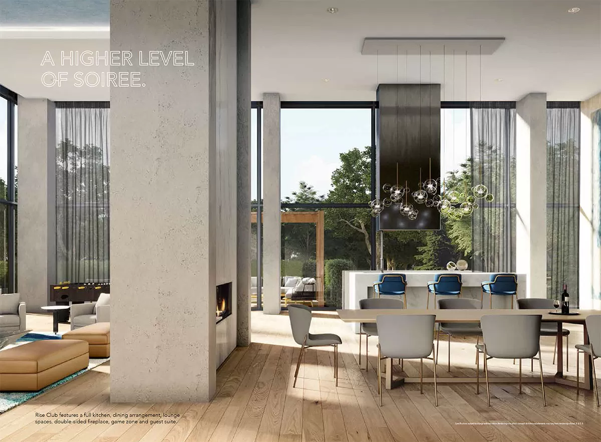 When complete, Rise at Lakeshore will consist of stunning modern stacked townhomes and one boutique condo building. Livable interior spaces combined with lush green exterior spaces are designed to bring people together. Whether it’s on your rooftop patio, relaxing in the lounge in front of the double-sided fireplace, or cooking in your kitchen overlooking Lake Ontario, Rise at Lakeshore is truly a place designed to live your best life.