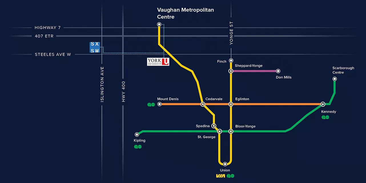 The new Toronto Subway System Line 1 extension makes it an easy, 45-minute commute from Union Station to Vaughan Metropolitan Centre, and your free SXSW shuttle gets you home from there in minutes.