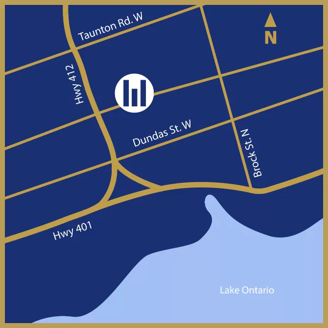 Grocery stores, retail shops, cafes, and more are conveniently located where Brock Street meets Taunton Road. Plus, the GO station is just 10 minutes way.